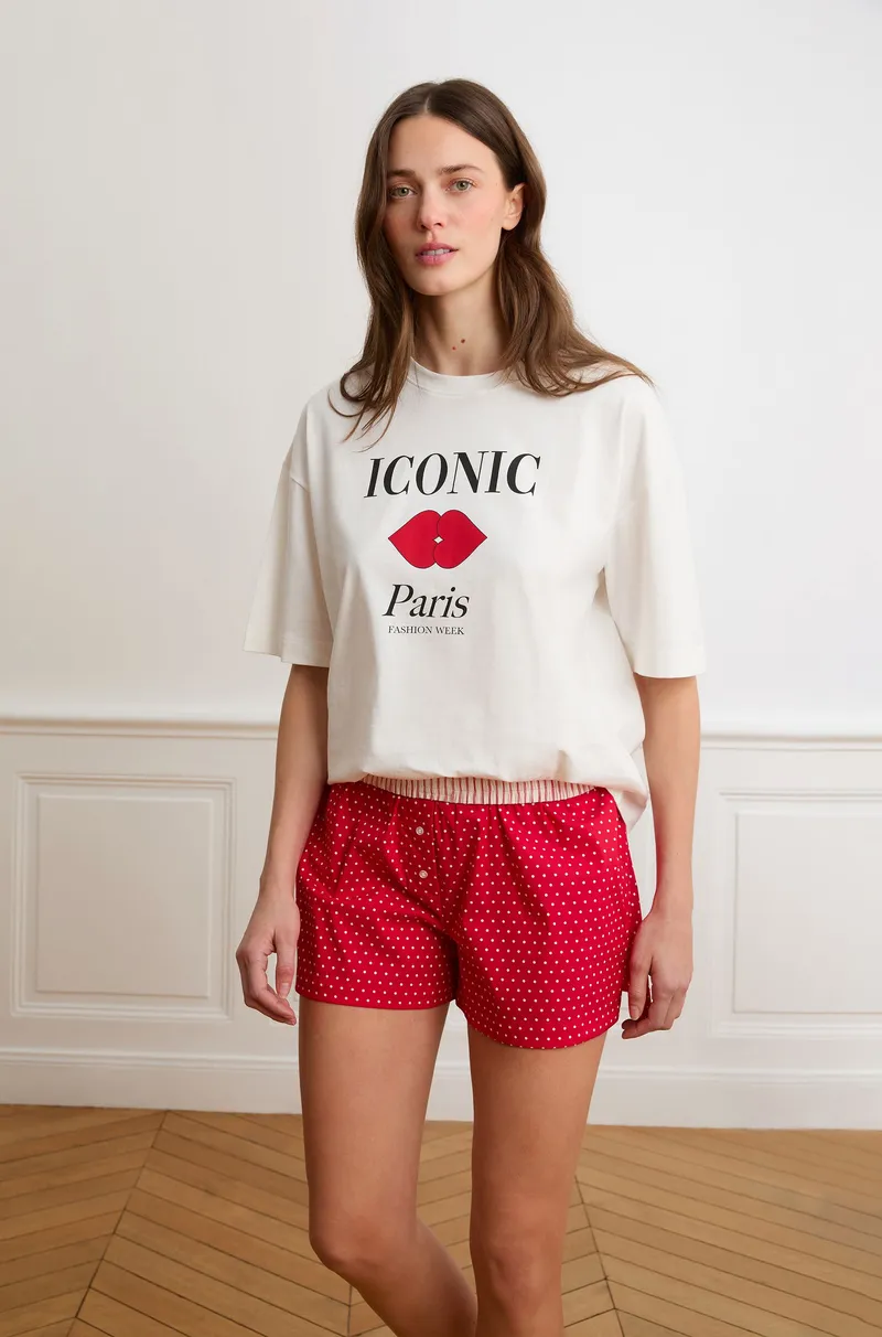 BOYFRIEND - Striped and heart-print cotton pajama shorts-RED-M