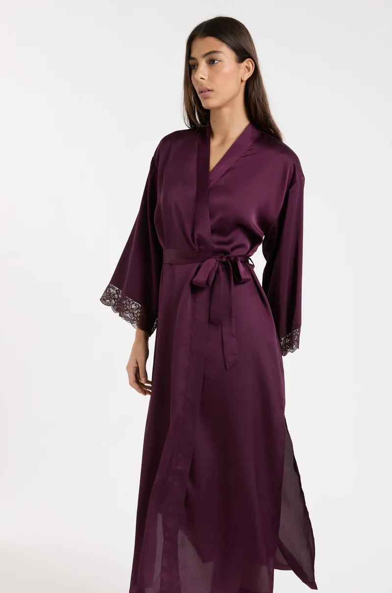 DESIRE - Long satin negligee with lace details-VIOLET-L
