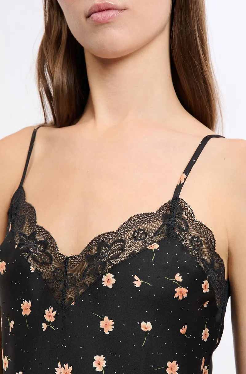 DESIRE Satin camisole with lace details-Salmon-M