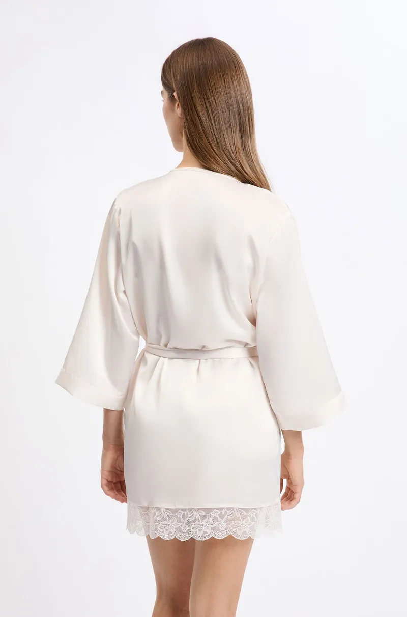 DESIRE Satin robe with lace details-Ecru-M
