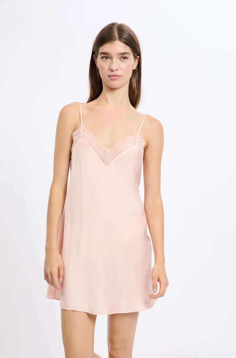 DESIRE - Satin Nightdress with Lace Details-BEIGE-S