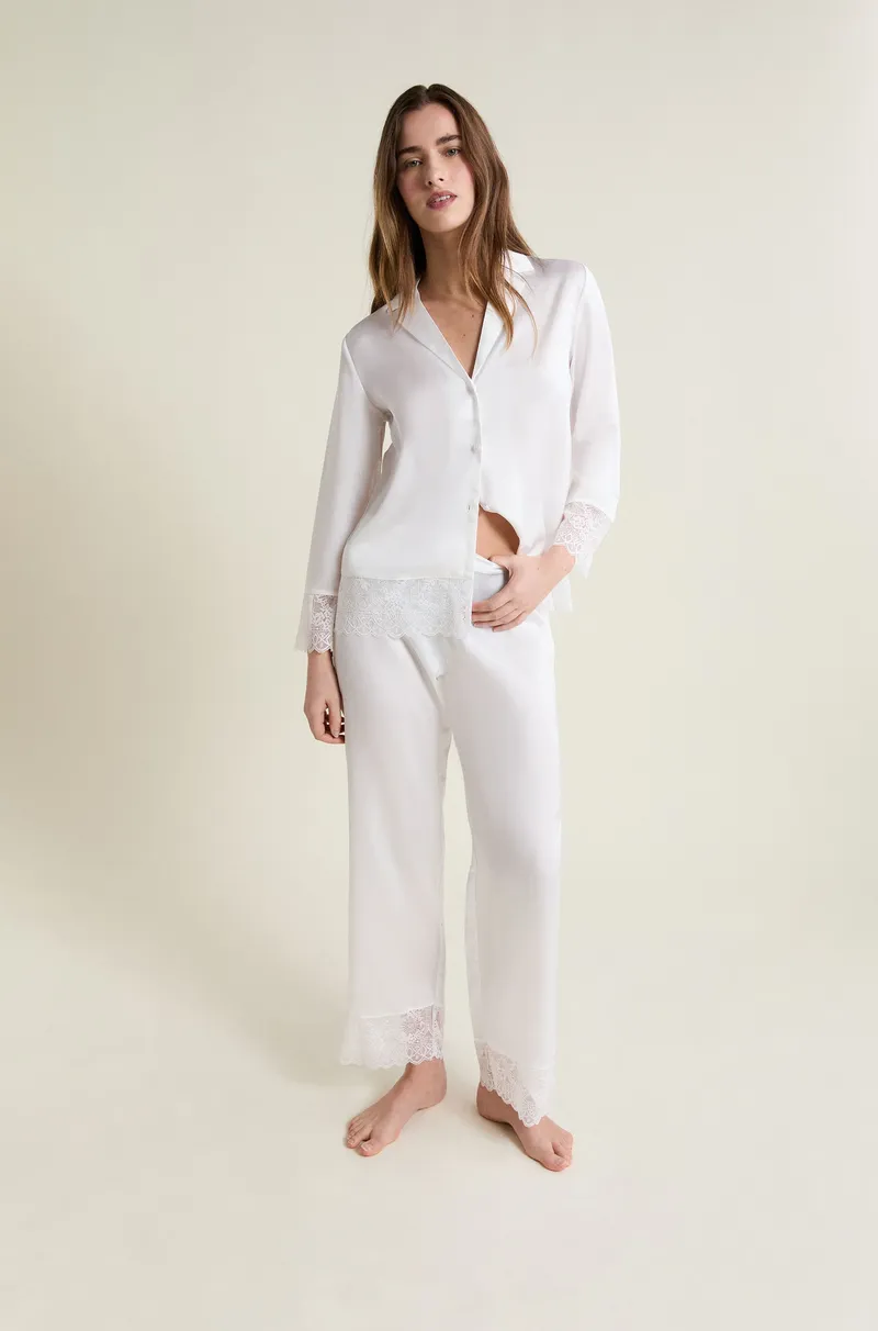 RENCONTRE - Satin pajama pants with lace detail 6557754