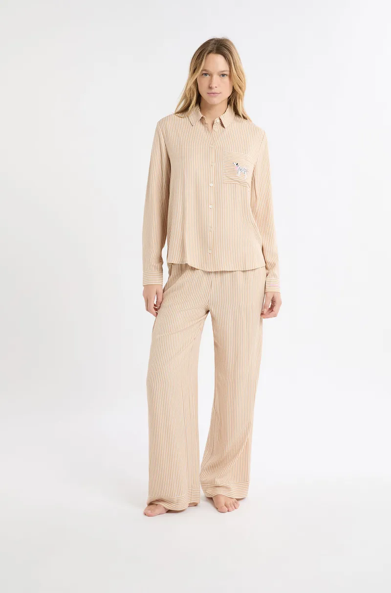 HOLGA - Pyjama Shirt with Stripes and Dalmatian Embroidery 6557036