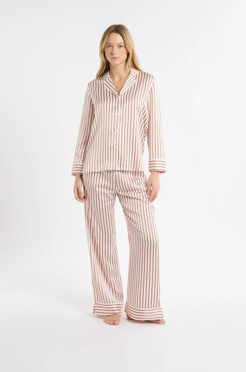 MEDRA Striped satin pyjama shirt-Salmon-M