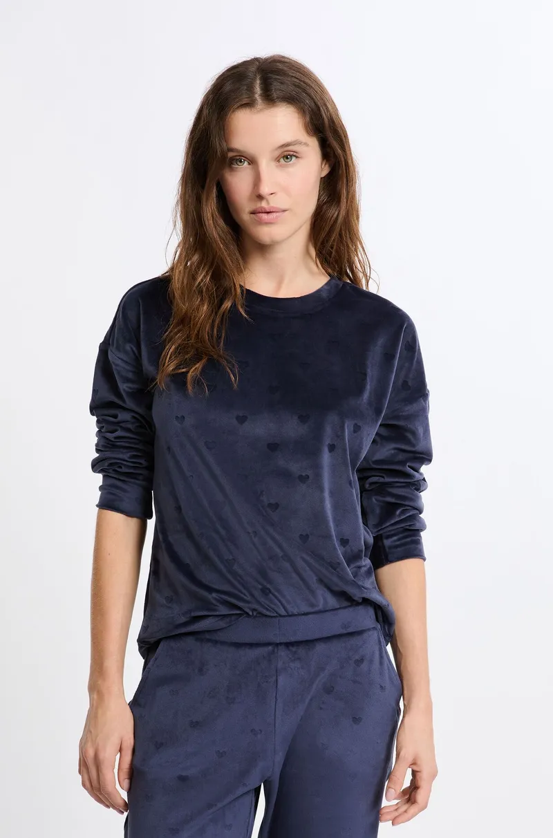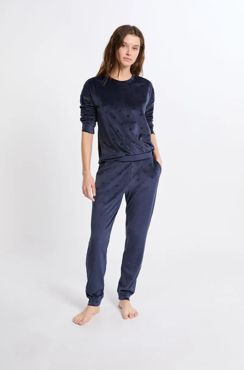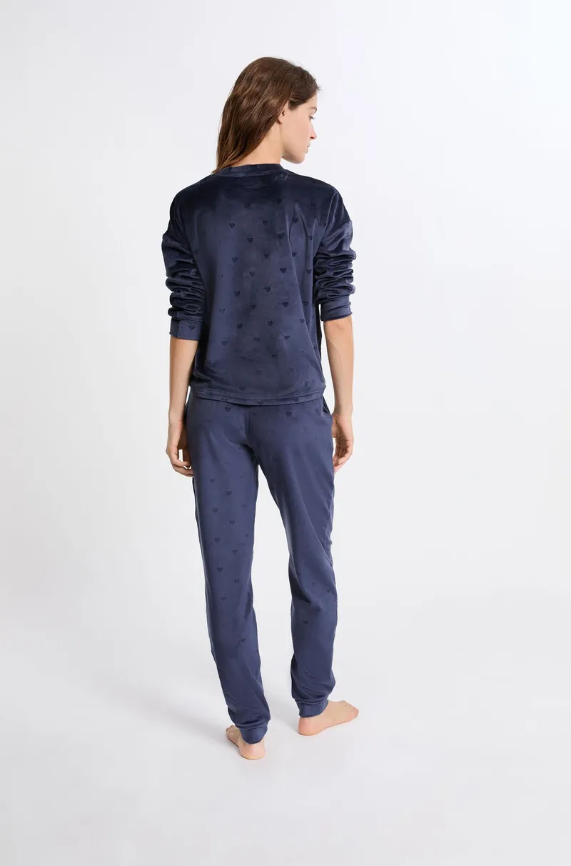 MELUSINE 2-piece pyjama set with velvet heart motifs-MARINE-L