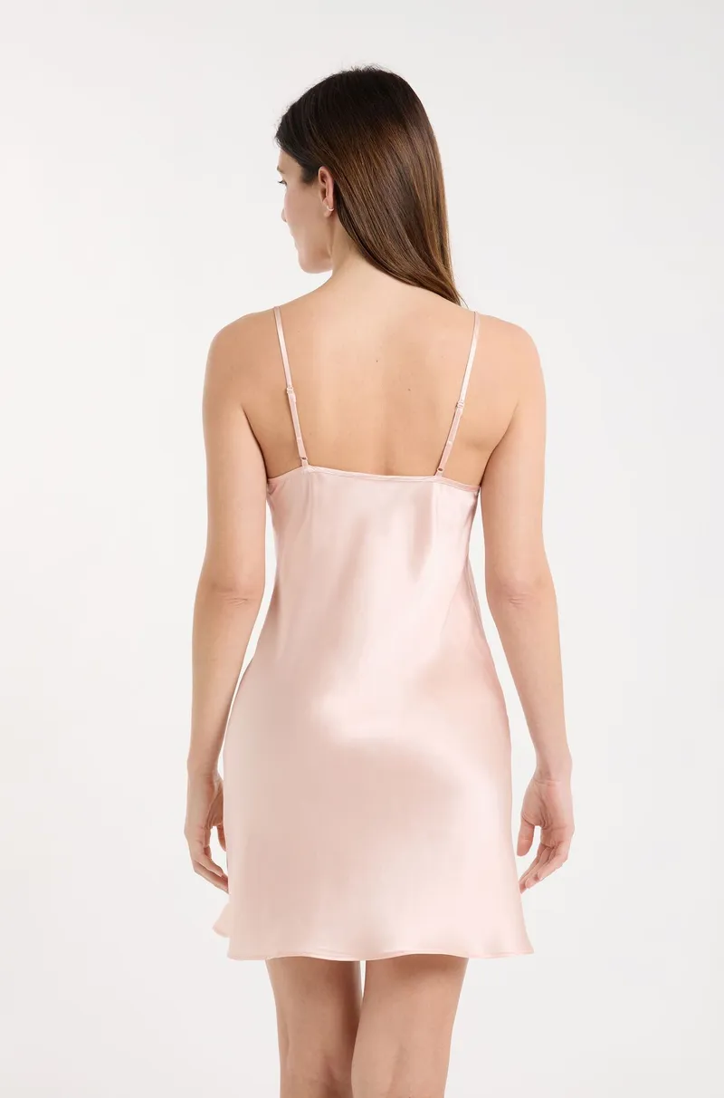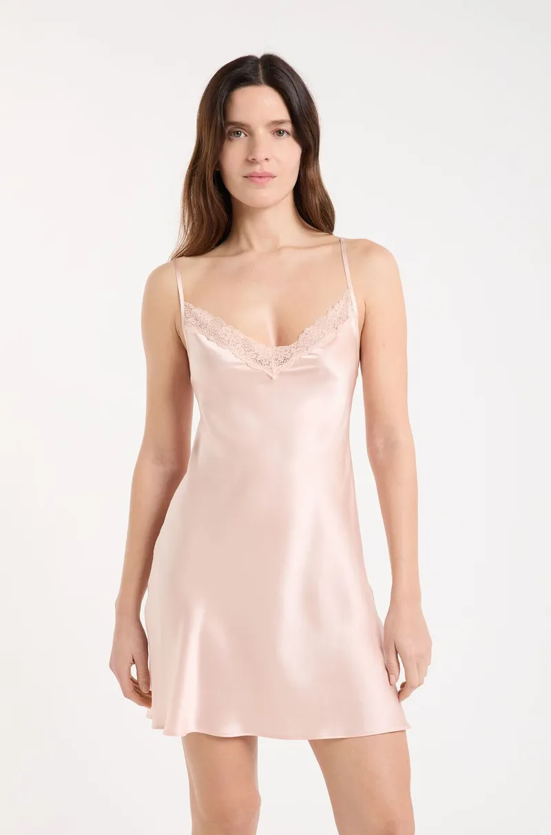MILKY Silk nightdress with lace details-Frosted pink-M
