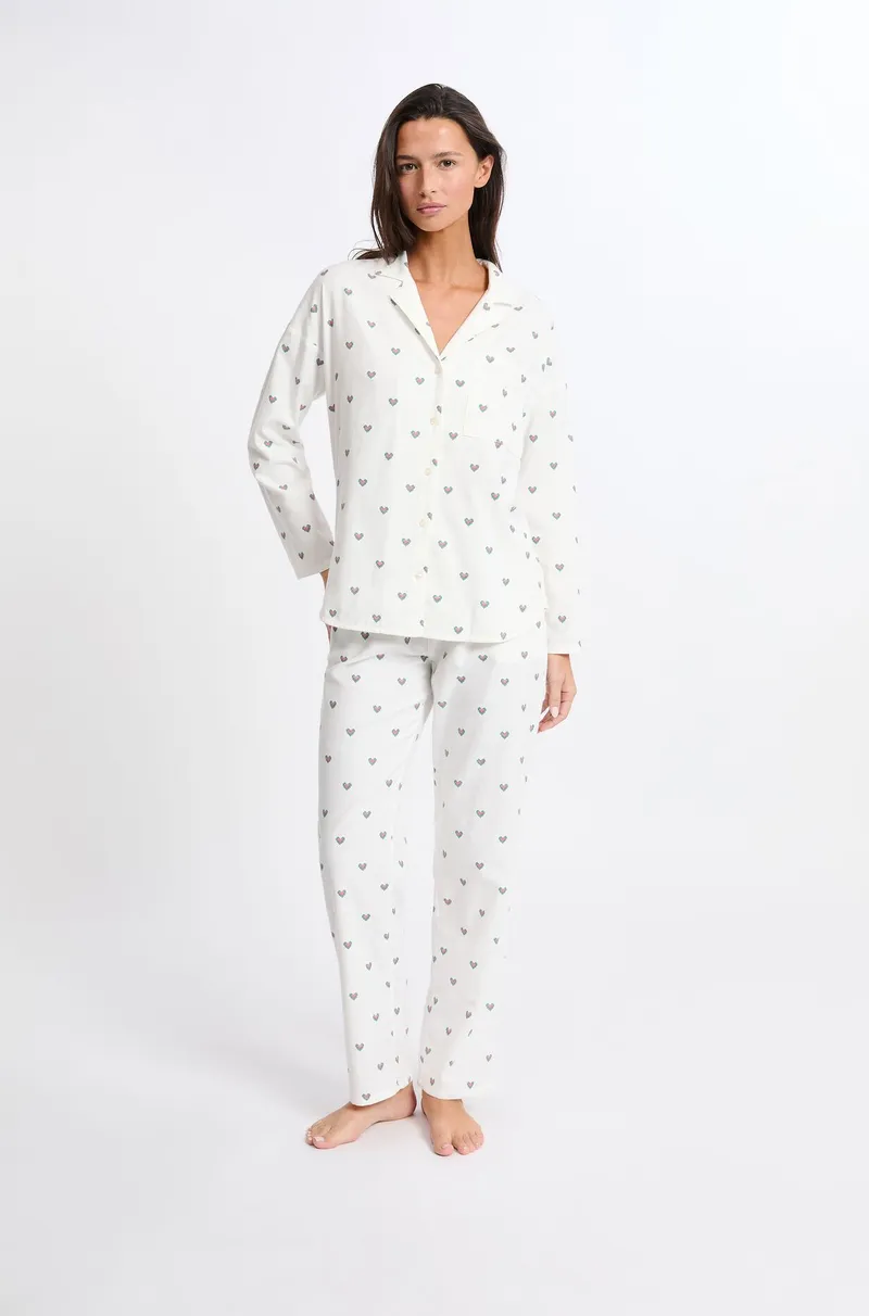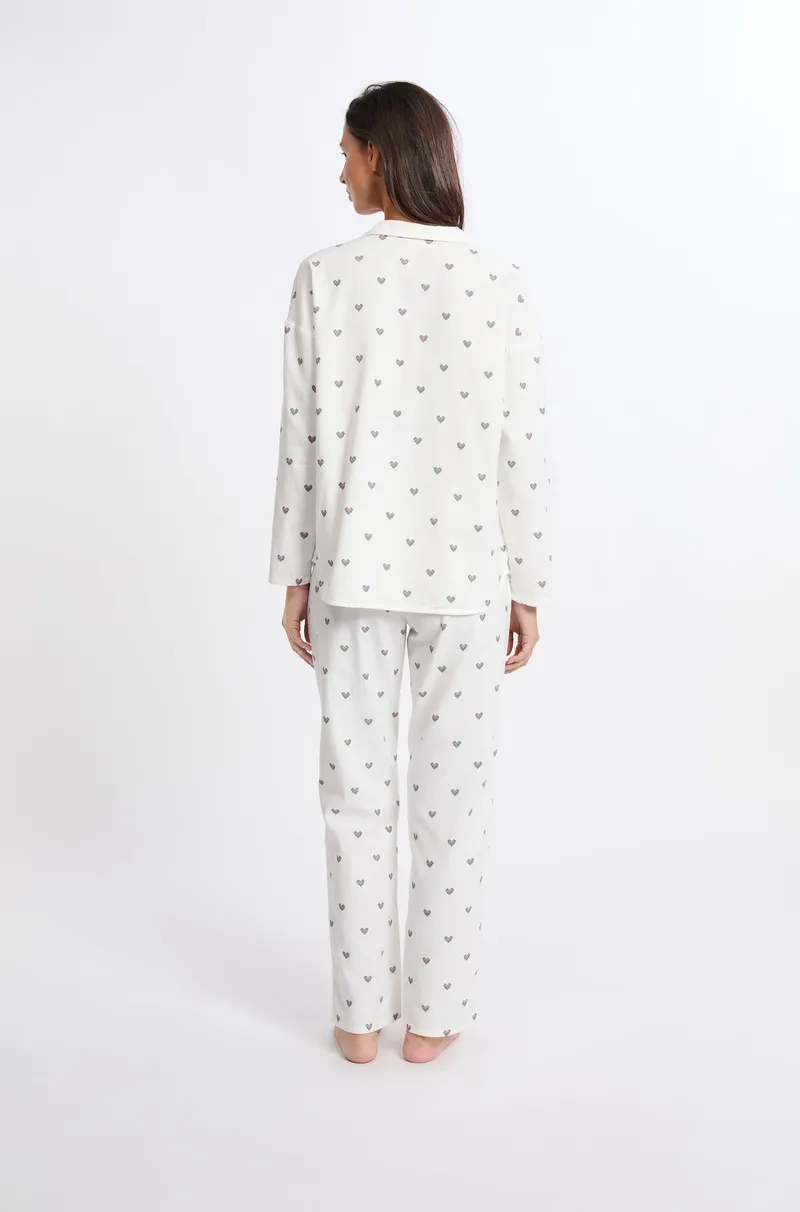 MILO 2-piece pyjama set with heart motifs in cotton-ECRU-XS