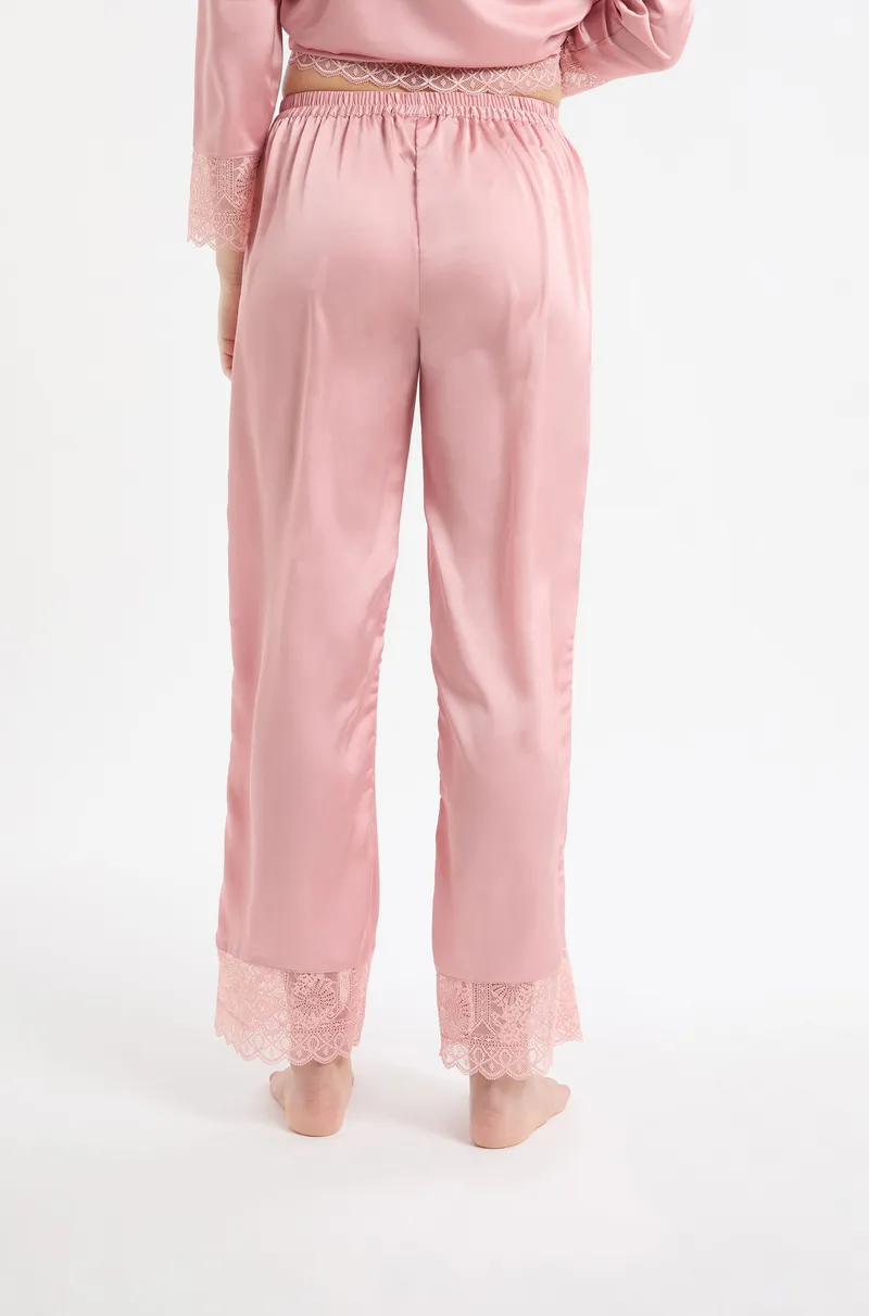 RENCONTRE - Satin pajama pants with lace detail-PINK-M