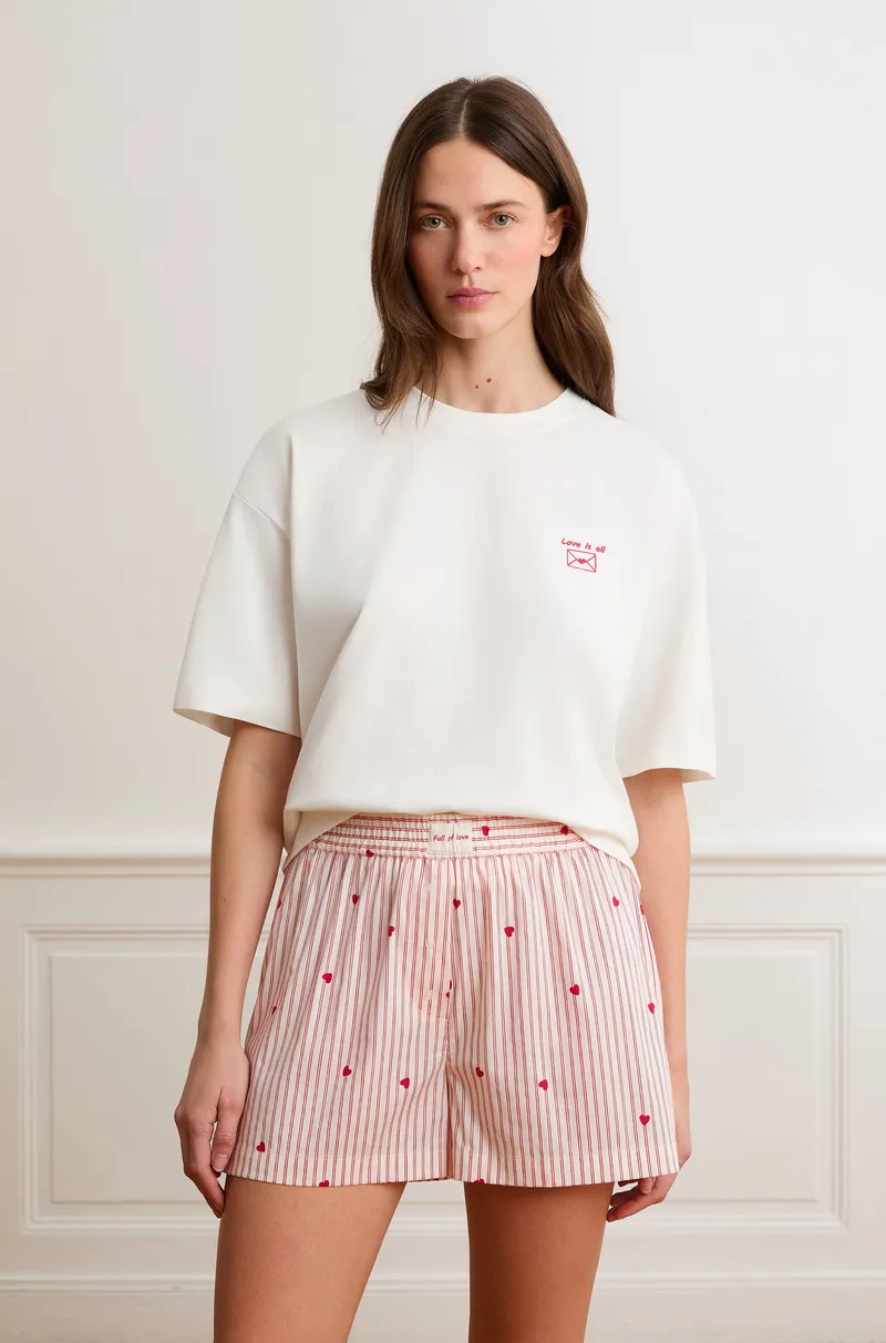 BOYFRIEND - Striped and heart-print cotton pajama shorts-MULTICOLORE-M