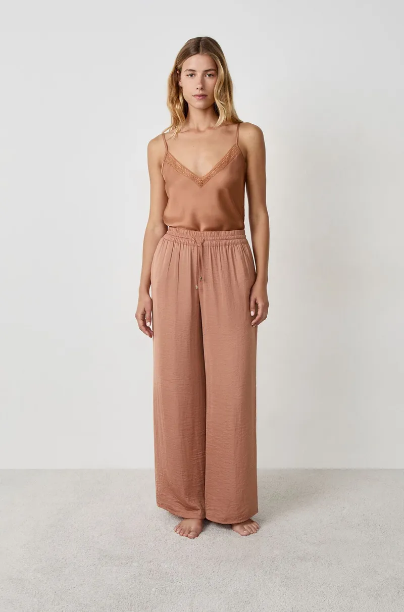 CHEETA Wide-leg satin trousers-BEIGE-M