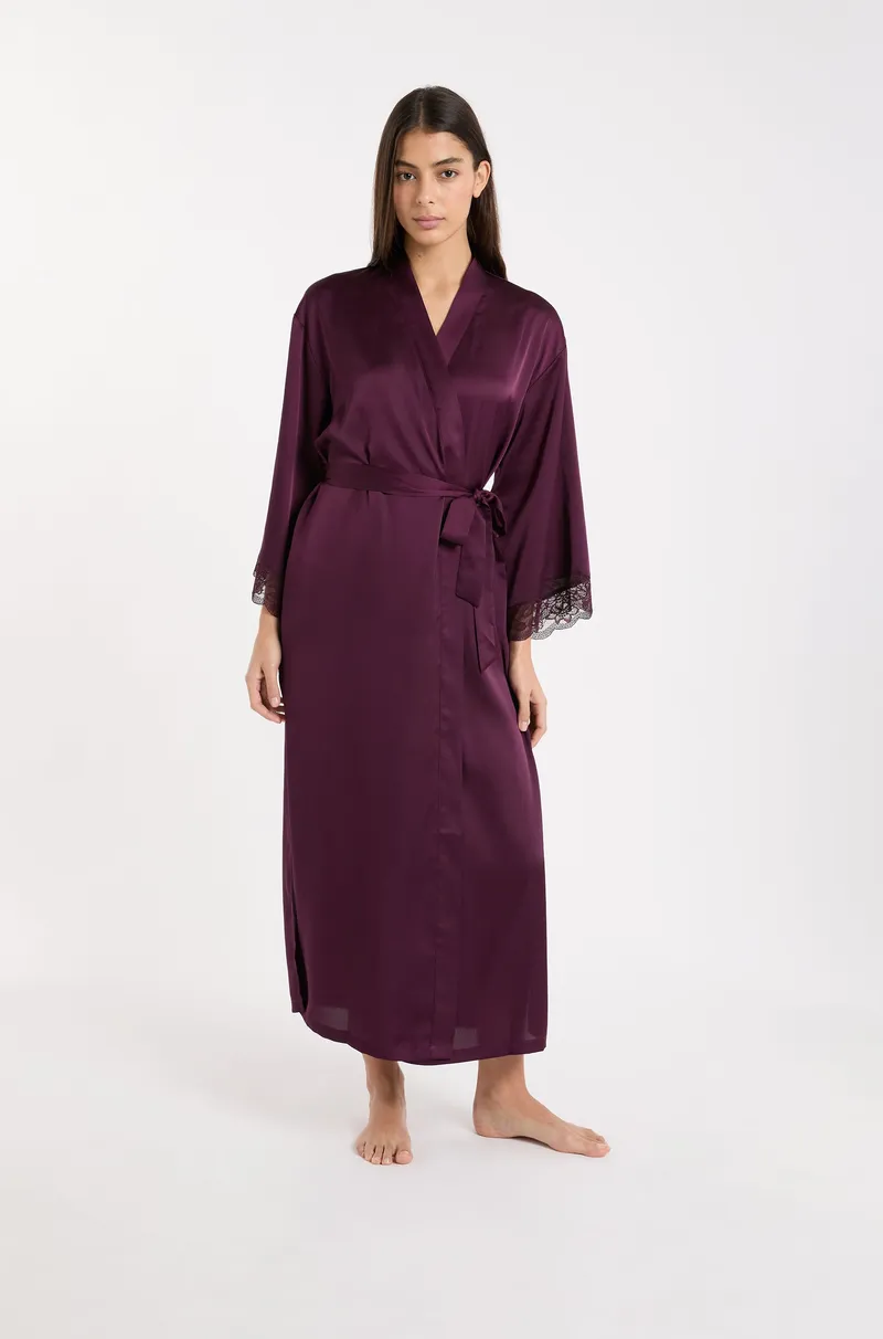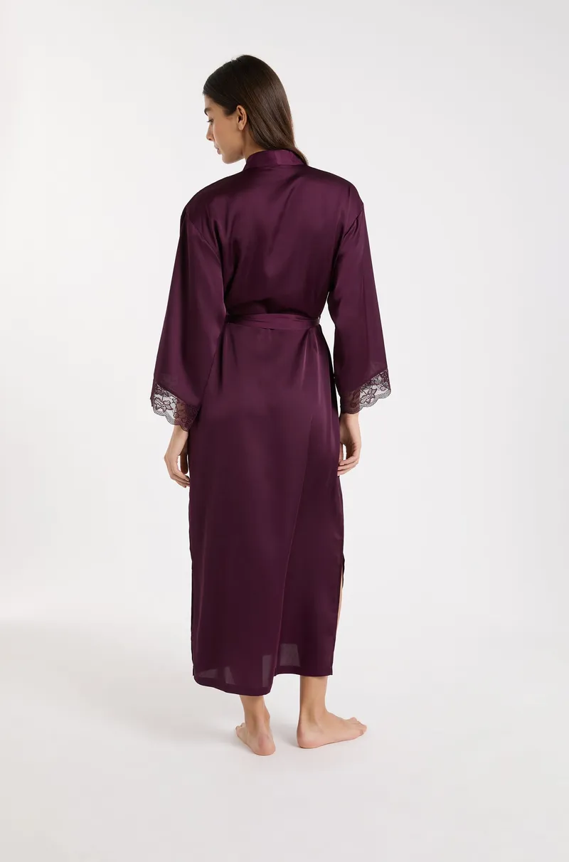 DESIRE - Long satin negligee with lace details-VIOLET-L