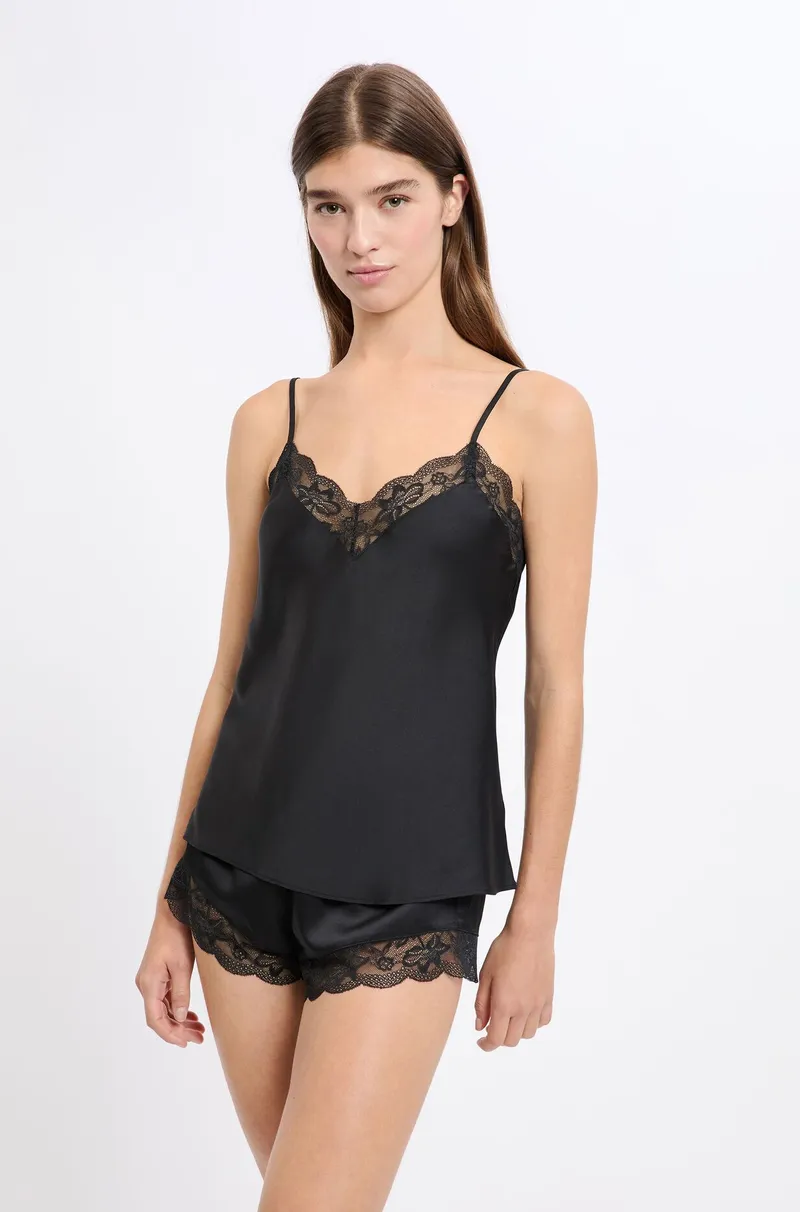 DESIRE Satin camisole with lace details-Black-M