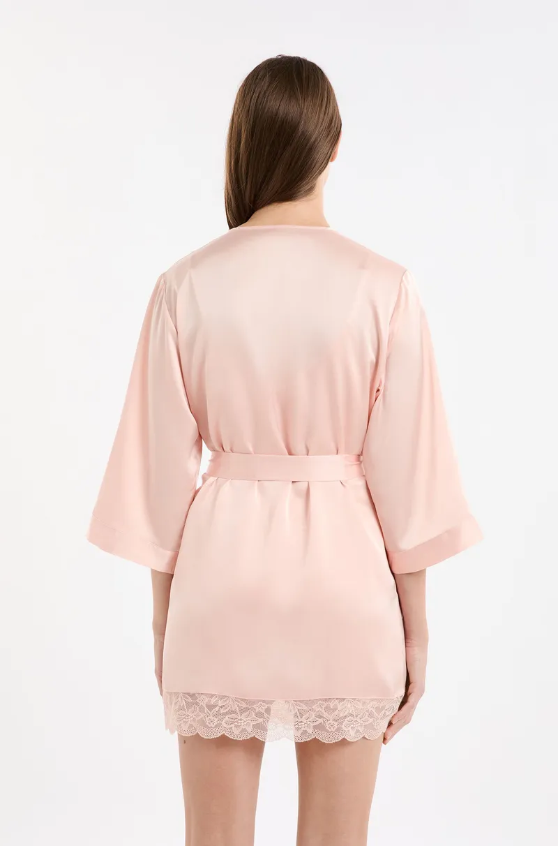 DESIRE - Satin Robe with Lace Details-BEIGE-M
