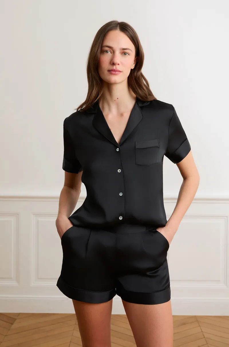 GIA - Satin pajama short-BLACK-M
