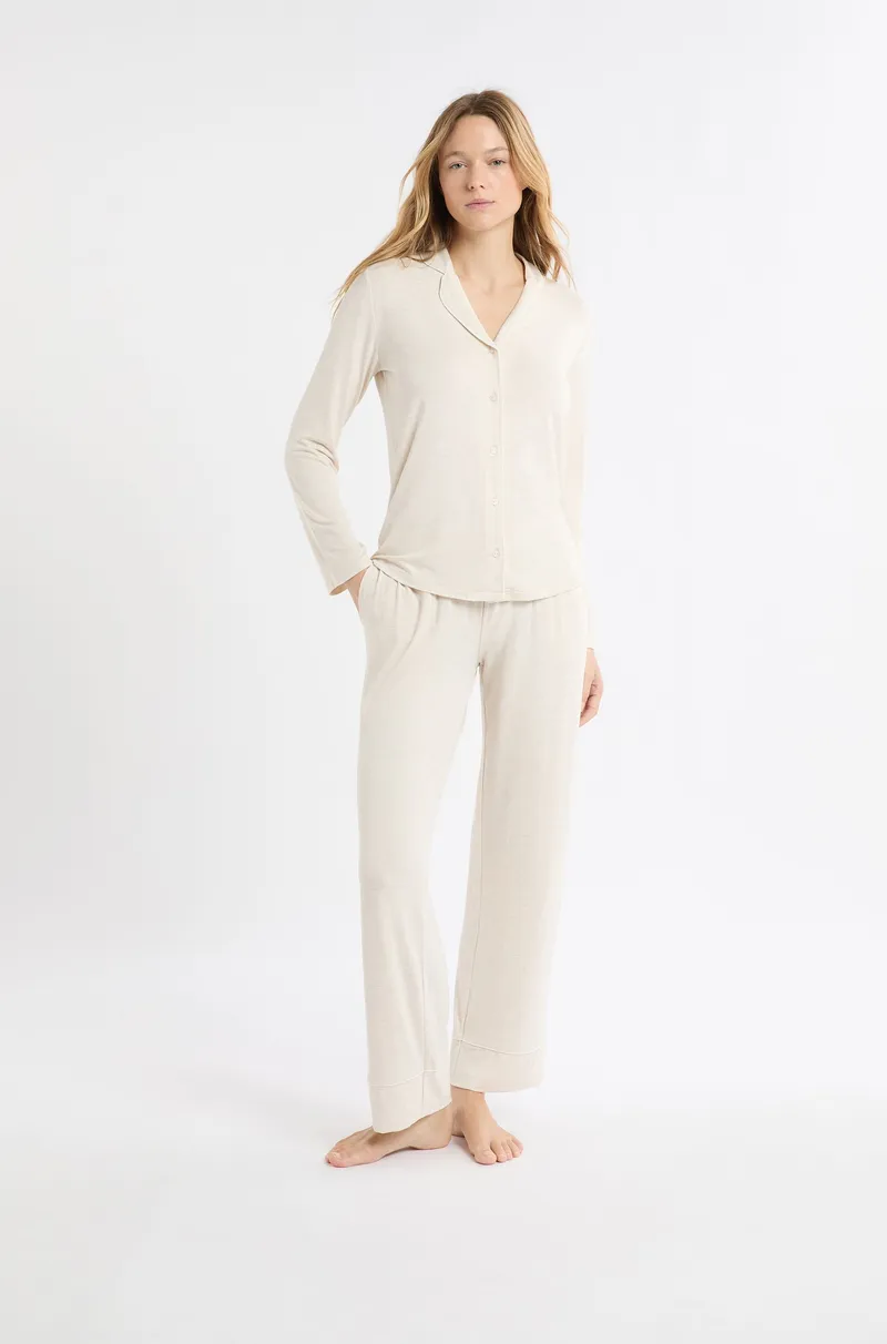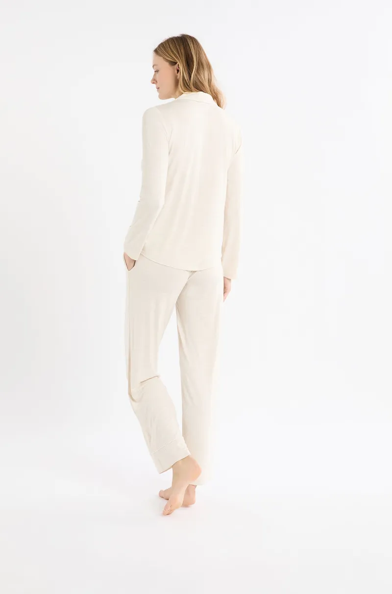 LUDVIKA - 2-Piece Long-Sleeved Pyjama Set-BEIGE-M