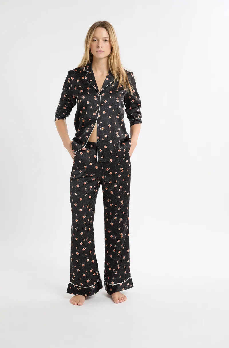 MEDRA Floral print satin pyjama trousers-Black-M
