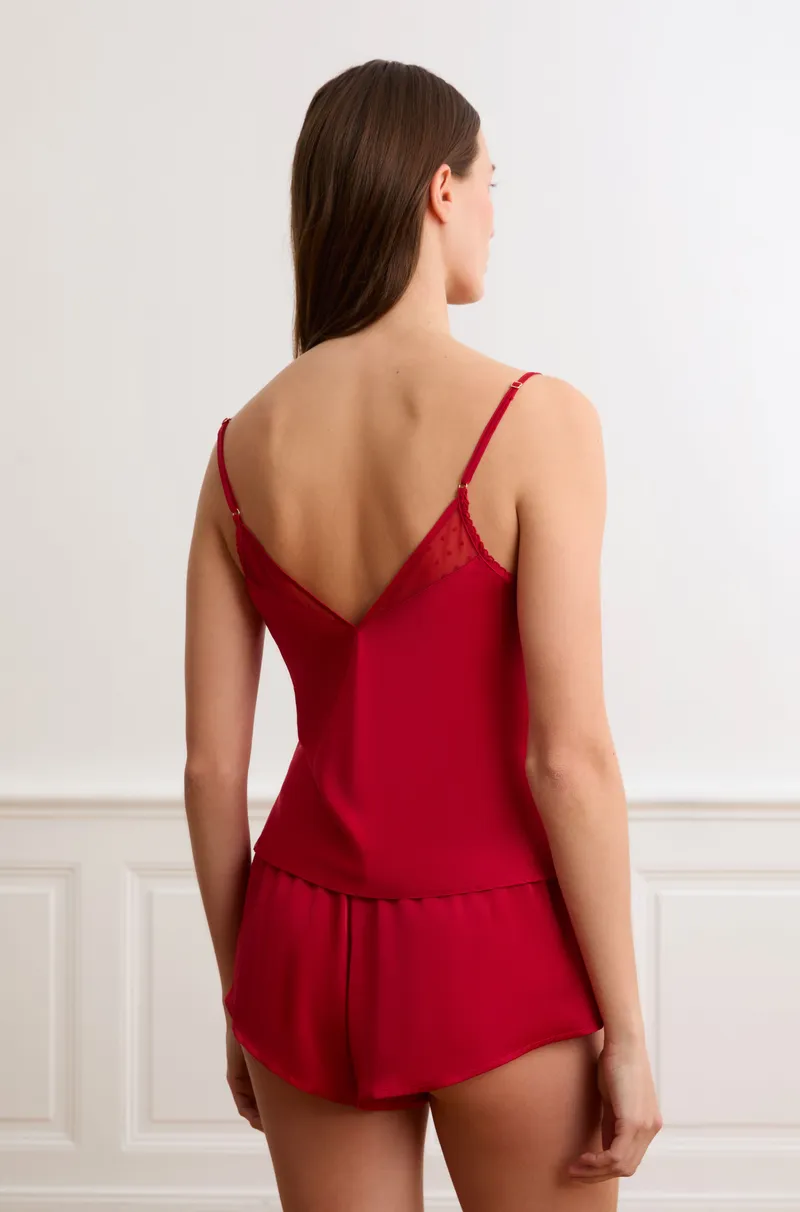 MINUIT - Satin camisole with bows and lace details -RED-L