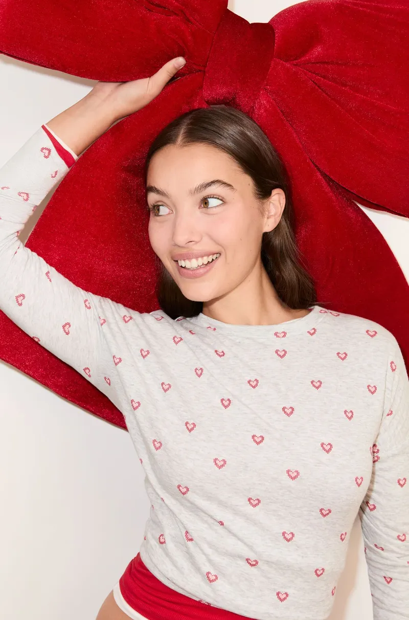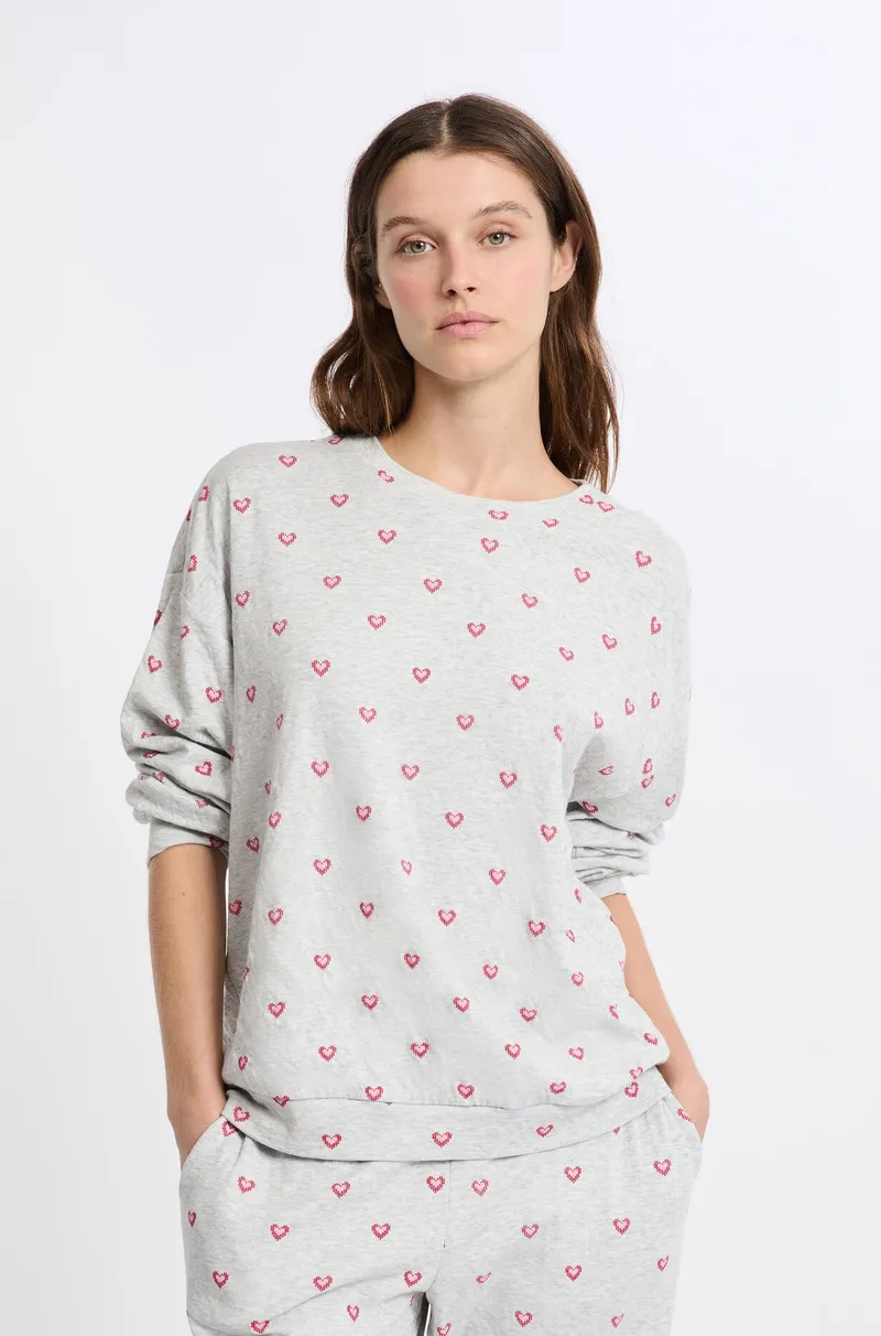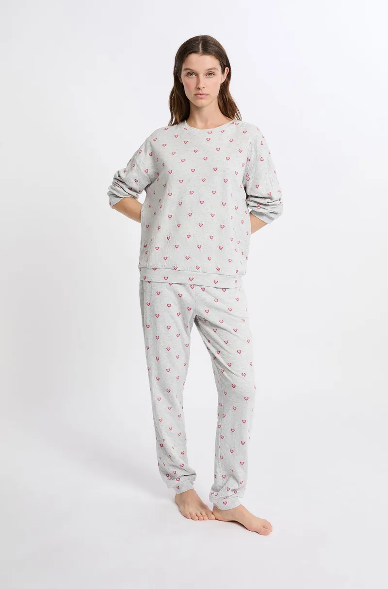 PAISHA Cotton pyjama t-shirt with heart motifs-GREY-XS