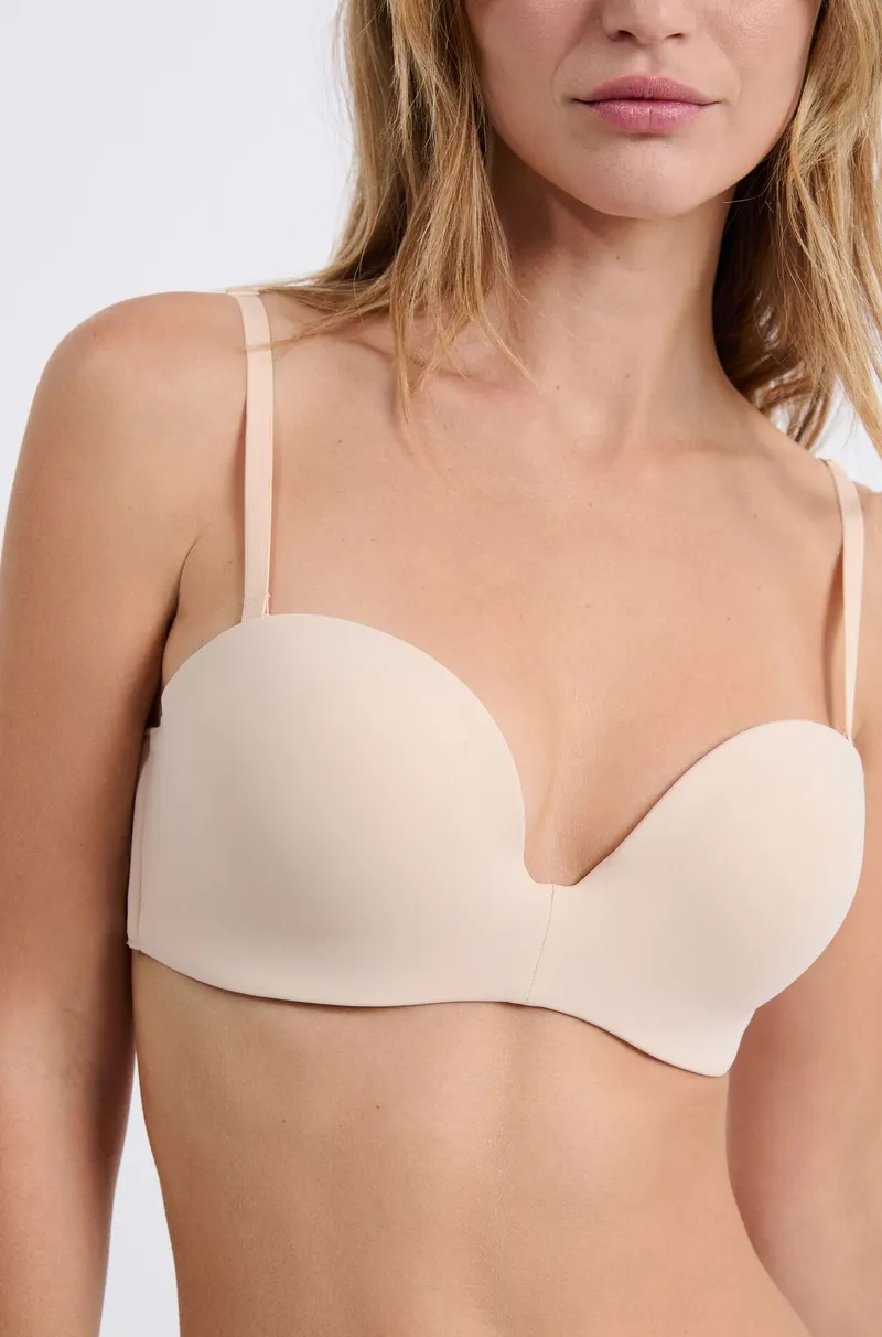PURE FIT® Microfibre push-up strapless bra with removable straps-Beige-30B