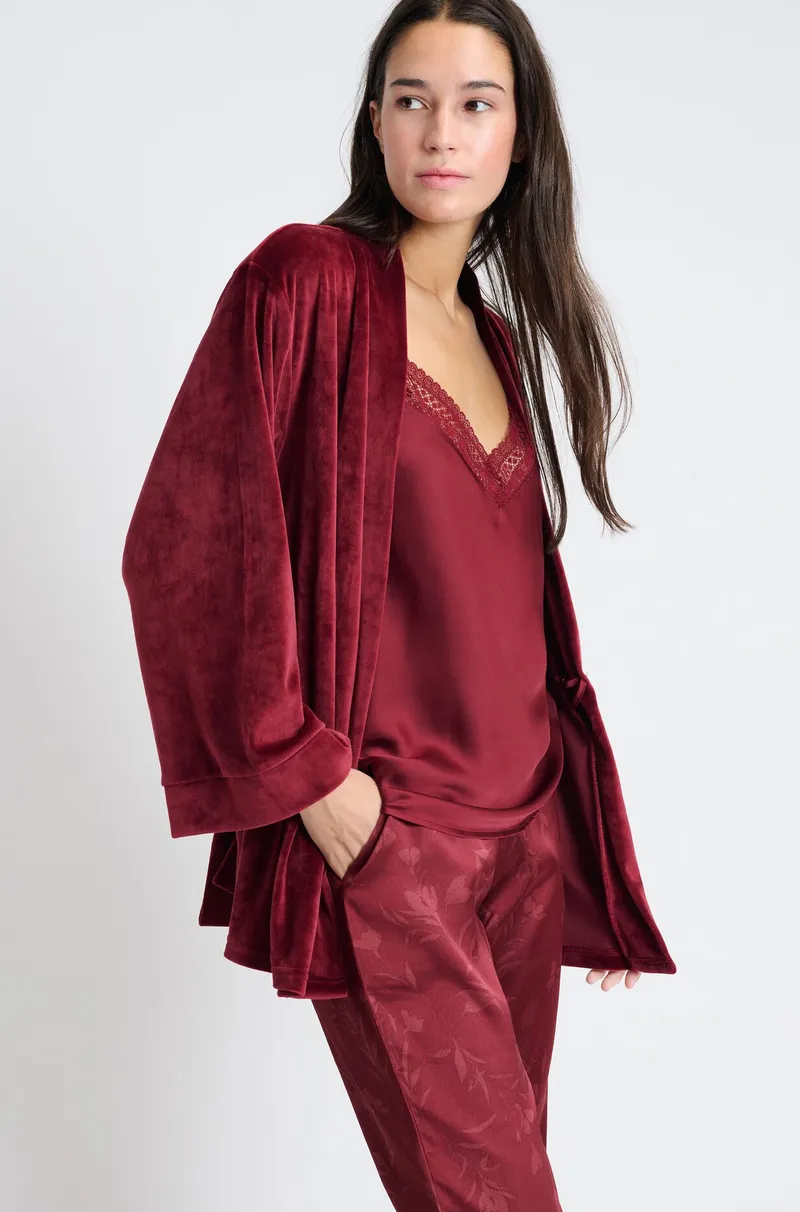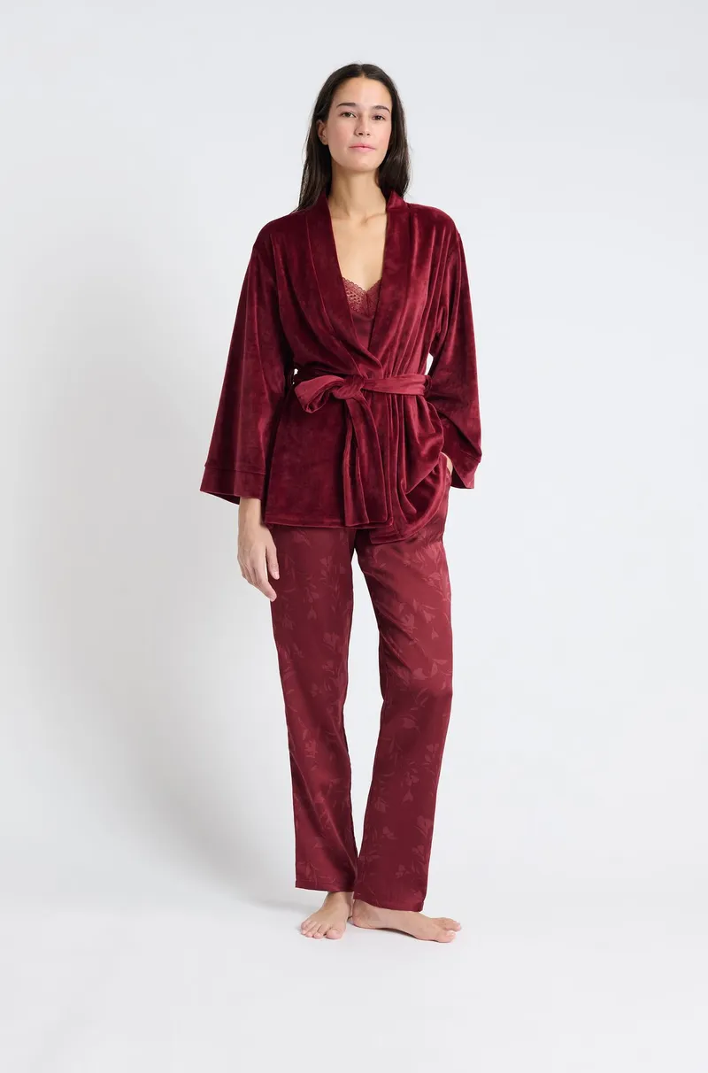 VERA 3-piece satin pyjamas-BURGUNDY GARNET-XS